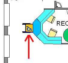 J'ai symbolisé un fauteuil roulant pour situer, sur la banque de réception, l'espace-plan à hauteur de handicapé, comme préconisé par les règles d'accès définis par la loi de 95.