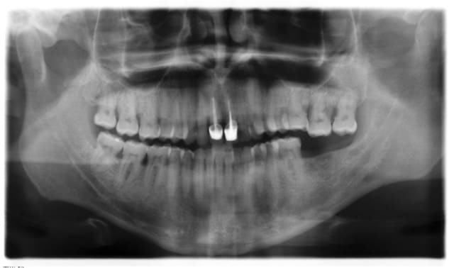 Une dent saine ? J'ai plutôt l'impression qu'il ne reste quasiment plus d'os. Tu vas réussir à l'ingresser avec quelques brackets et même faire repousser l'os en interradiculaire ?