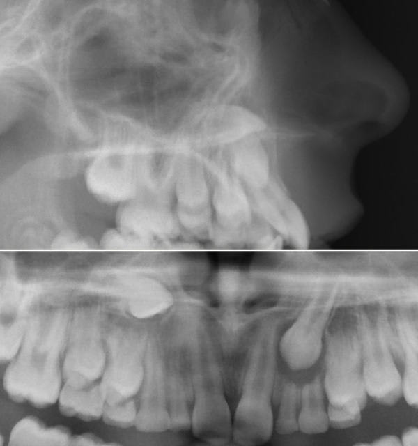 bon alors, sauf erreur on est face à un(e) brachy sévère, qui présente une agénésie des 2 dont la 23 est en train de faire son chemin, dévorant tout ce qui s'oppose à elle (II, III), la 13 a l'air de se plaire dans le palais; tout ceci dans un tableau de cl II 1.