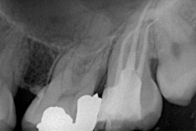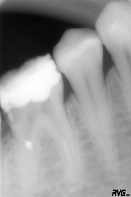 connaissant ton serieux, je sais que tu as forcément mis la digue, irrigué correctement, réalisé une belle mise en forme, une obturation compacte, et une belle reconstitution bien étanche.