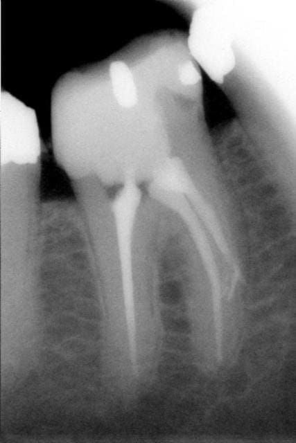 Cas déja posté. F2 neuf cassé dans un canal DL de 36 suite à une petite précipitation à la fin de l'endo.