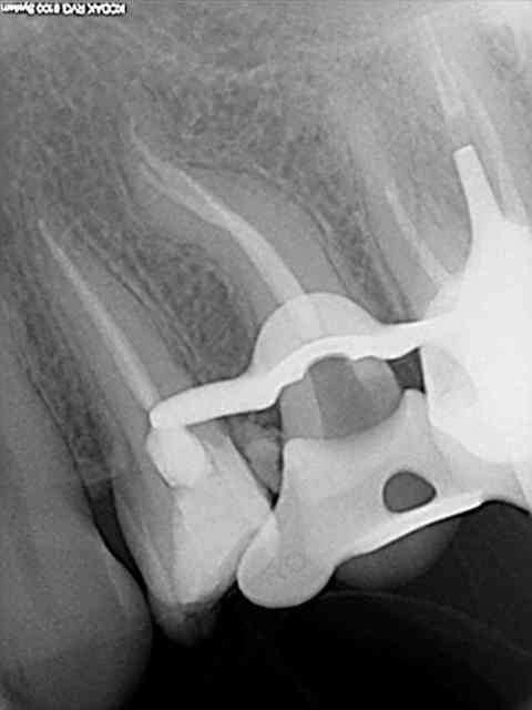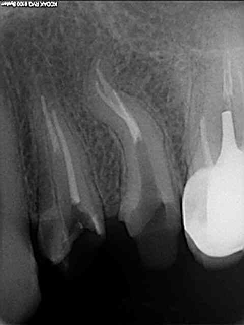 Cela ne m'a pas gêné pour desobturer et faire l'empreinte pour l'inlay-core, mais la condensation de la gutta au niveau apical n'a pas été terrible.
