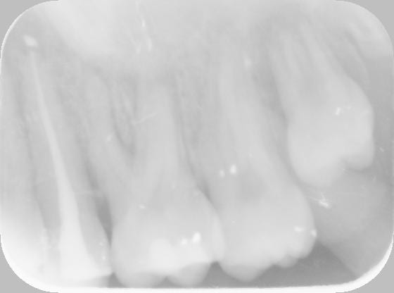 à l'exament clinique il y avait une gingivite et des caries dans ce secteur. après réalisation des soins tjs pareil avec en plus une douleur précise sur la 25: percussion douloureuse, radio ras, test vitalité negatif. le collègue a pensé à une mortification sous composite, il fait un test au fraisage negatif et endo sans anesthésie. mise sous antibio.