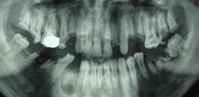 Ni lui, ni sa curatrice n'ont donné suite malgré mes nombreux coups de téléphone et mes mises en garde concernant les images lacunaires à la mandibule. A l'époque, j'avais trouvé une pathologie semblable dans mes bouquins de radio (même terrain déficient, même image) mais j'avoue ne pas me souvenir du nom :.<