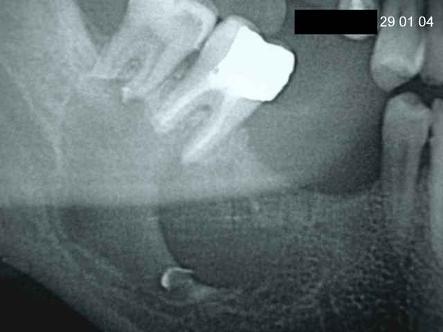 Ni lui, ni sa curatrice n'ont donné suite malgré mes nombreux coups de téléphone et mes mises en garde concernant les images lacunaires à la mandibule. A l'époque, j'avais trouvé une pathologie semblable dans mes bouquins de radio (même terrain déficient, même image) mais j'avoue ne pas me souvenir du nom :.<
