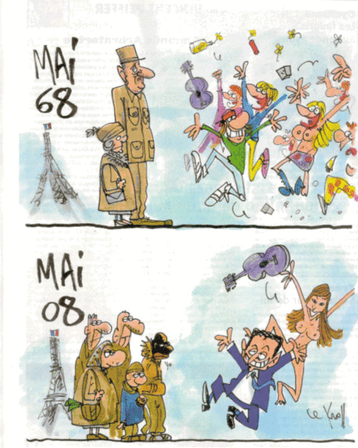 Donc "68 vu par la droite", passé vite-fait le retour sur la peur du chaos d'alors, ce fut un concert d'évocations sympathiques sur la révolte de la jeunesse, bien compréhensible, contre un ordre établi autoritaire, de compassion sur le sentiment de révolte bien légitime et heureux de la jeunesse, de constat d'éternel recommencement voire d'attente logique de la prochaine...