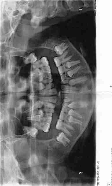 si tu laisses faire mother nature la résorption étant à zéro pour les molaires entre autre ,les dts de lait seront encore là à 30 ans et surtout je crains une superbe ankylose des définitives, les canines sont déjà très hautes!