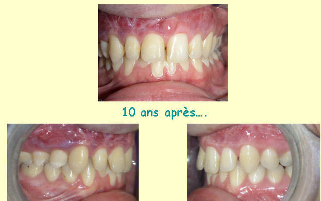 - Ce jeune garçon de 12 ans avait été « jeté » de tous les cabinets comme beaucoup trop jeune pour une chirurgie associé. Tous les orthodontistes préalablement consultés avaient dit « je sèche » (voir photo ci-dessous). De fait ce traitement a été extrêmement difficile et m’a fait passer réellement des nuits blanches. Au final, le patient est très satisfait du résultat obtenu, et moi aussi. On pourrait évidemment le reprendre maintenant pour l’améliorer.. Je le lui ai proposé, il ne le désire pas, je respecte.