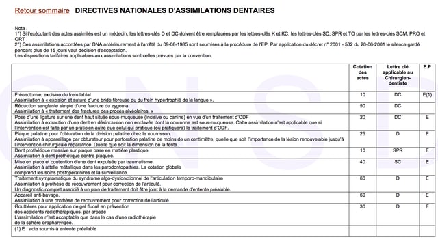 J'ai pas trouvé le texte des assimilations en dentaire sur le site Ameli(ça tient sur une page)