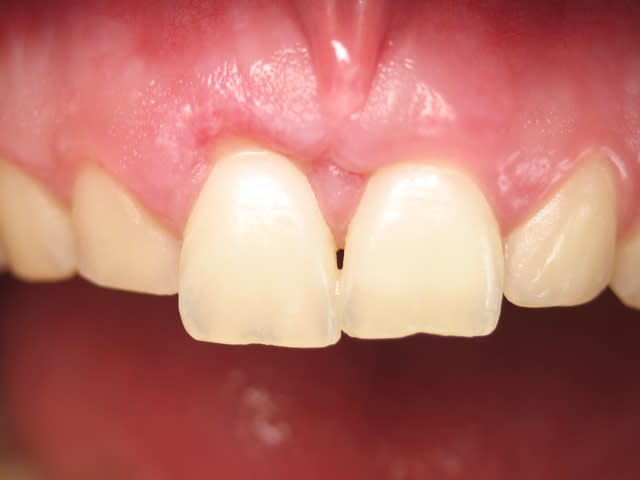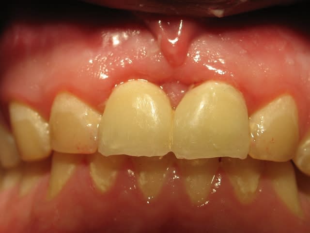 je ne suis pas un pro de la freinectomie, donc dans un cas aussi chaud, je ne le sent pas, (le patient a un sourire gingival)