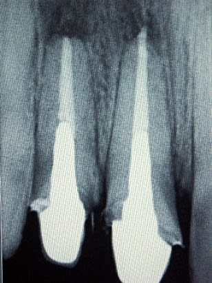 Les lésions avaient une double origine: des compos pas étanches posés dans la salive surement et des endos mer..ques qui dataient de 3 ans. Il n'y avait pas de tenon dans les racines donc risque de fracture logiquement faible.