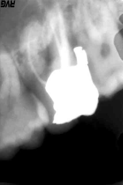 Le patient m'a dit que le dentiste "avait mis un truc en métal pour empêcher que ça déborde". Bon ben ça a débordé quand même.