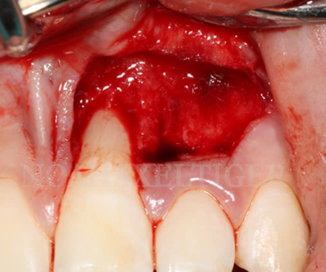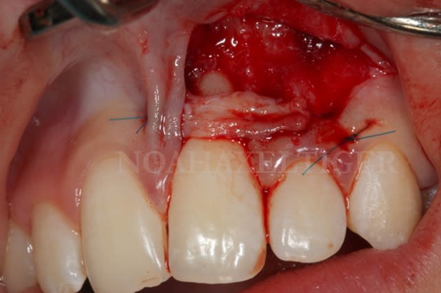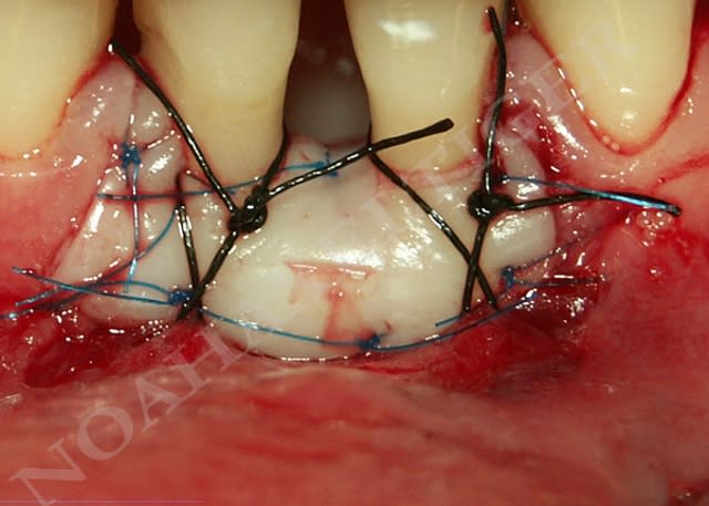 2)Ta greffe se présente en trapèze, et recouvre la totalité de ce que tu as exposé. Je comprends bien pourquoi, cependant j'ai souvent vu des greffes "rectangulaires"(ex: programme SFPIO) et des greffes recouvrant uniquement la partie cervicale,laissant la partie apicale non recouverte.(Dentalespace)