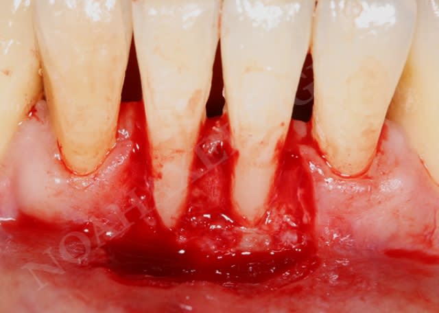 Pour cette raison les obturations présentent sur la partie radiculaire à recouvrir doivent être déposées. La cavité résultant de la dépose de l'obturation doit être adoucie au maximum afin d'obtenir une concavité "douce". Les fraises de Waerhaug ou encore de Touati sont parfaitement adaptées à cet usage. La surface radiculaire peut être (si on le désire) chimiquement préparée avec de l'EDTA (type PrefGel de chez Straumann).
