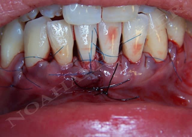 je vous joindrai les photos de la cicatrisation dans quelques semaines ... en espérant que mon analyse me donne raison en ce qui concerne le role négatif de la mobilité dentaire sur la cicatrisation en chirurgie mucogingivale. ;-))