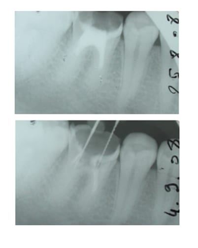 1/ J'ai parfaitement vu que la radio était celle d'une "pulpo" faite il y a longtemps et mes remarques concernant le travail de progression dans le canal portaient sans équivoque sur la reprise de traitement en cours (la remarque de Ploc confirme mes recommandations)