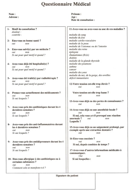 D'autre part, je rajouterai bien un questionnaire dentaire au médical qui permettrait de cibler le patient: