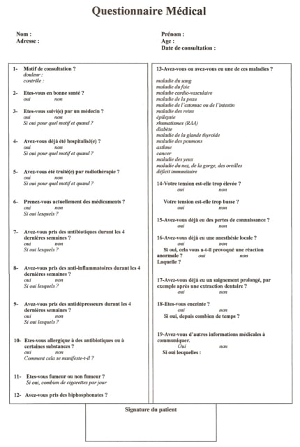 D'autre part, je rajouterai bien un questionnaire dentaire au médical qui permettrait de cibler le patient: