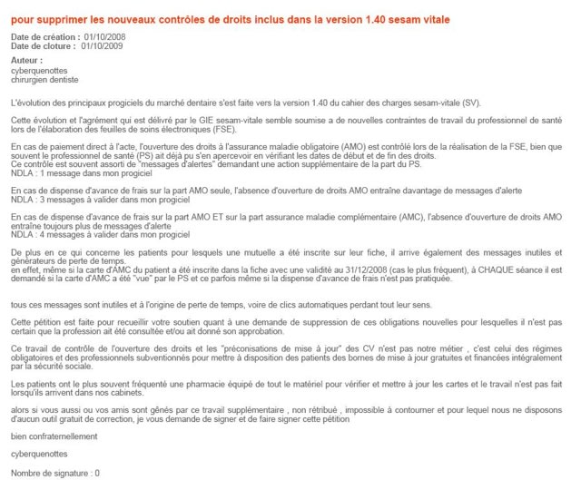 voilà une sage décision cyberquenottes car ce matin ta pétition au GIE SESAM VITALE partait d'un bon sentiment, mais tu te trompais totalement d'interlocuteur