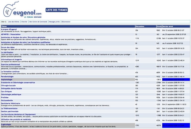 Vous qui vous lamentez jours après jours de ne plus pouvoir voir de zolis liens rourouges sur la page d'accueil de ce lieu de dépravation qu'est eugenol, vous qui, ne sachant plus où cliquer, en êtes arrivés tiraillés par l'ennui à vous perdre en eugénologie, occlusodontie, ou pire, en formation continue, sachez que votre calvaire touche à sa fin... En effet, Le Choixpeau Magique a entendu votre complainte, et vous présente aujourd'hui sa dernière création sous vos yeux esbaudis, au paroxysme de l'inédit et du jamais vu avant, l'inestimable EUGESHINE(c)(tm)