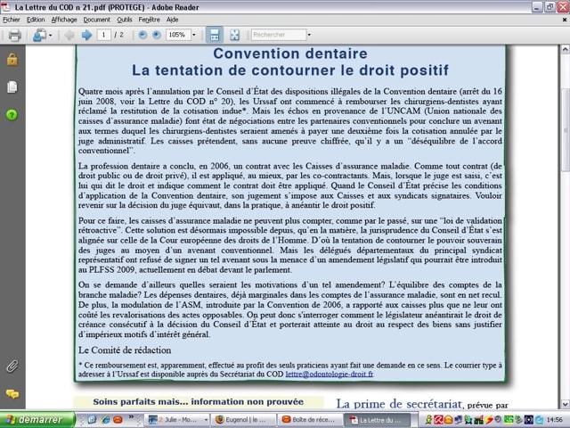 Quelqu'un pourrait il joindre en format PDF la lettre du C.O.D ( Collège Odontologie et de Droit) où ils parlent de l'amendement sur L'ASM trop perçu,merci