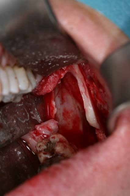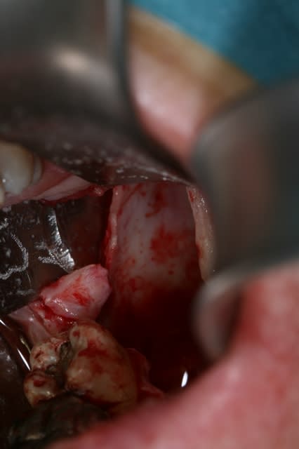 tu fais saigner l'os avec la curette pour bien nettoyer et le niveau sanguin monte doucement dansla cavité.