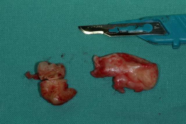 - tu as bien vu le packing sur la photo préop donc effectivement en AG... Certains dirait une AG mais cela peut se faire en local... oui pour l'exérèse mais si tu fractures la mandibule ça devient vraiment galère à gérer en local.