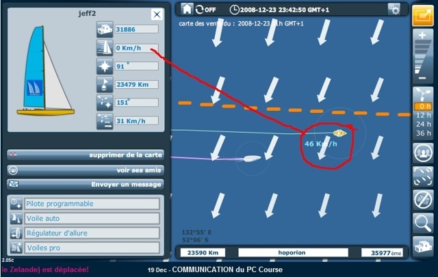 vents et positions à 23h42..je pense qu'ils ont des soucis avec le serveur pour les mises à jours avec décalage entre leurs calculs et l'affichage sur la carte: