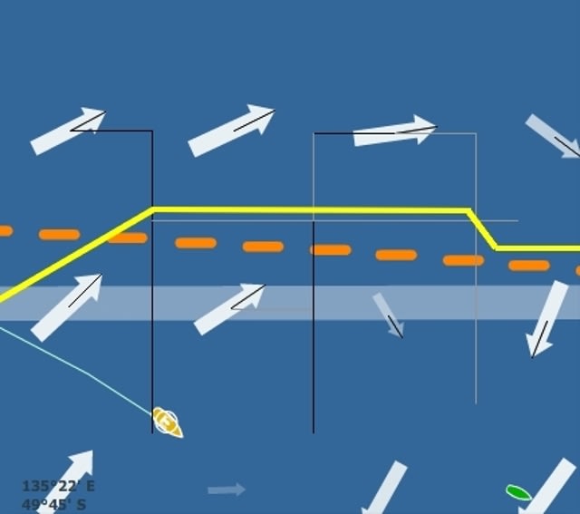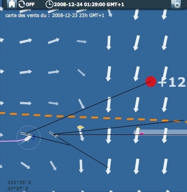 En tout cas, si les courants ne sont pas indiqués, on voit bien la dérive au vent. Cap à 60, route à 90 ! je me demande si la simulation à 12 et 24H, qd on bouge la barre, en tient compte. Je n'en ai pas l'impression, qu'en pensez vous ?