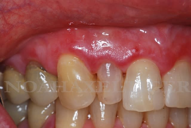 ma collaboratrice a eu ma patiente en consultation, gencive purulente, papilles légèrement décapitées.