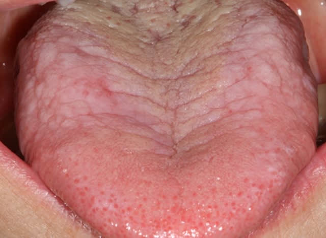 pas de lésions sur la langues ? (ulcération ou autre)