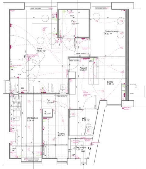 Merci pour le commentaires sur le plan, je pense que le résultat sera plutôt agréable, pour le praticien/assistante et pour les patients (très lumineux, et atmosphère contemporaine ).