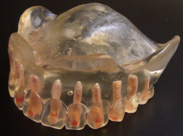 je connaissais le mélange résine-baryum mais le prothésiste qui faisait m'avait dit que certains praticien n'avaient pas toujours un résultat optimal au scanner. peut-être un problème de mélange insuffisant en baryum ?