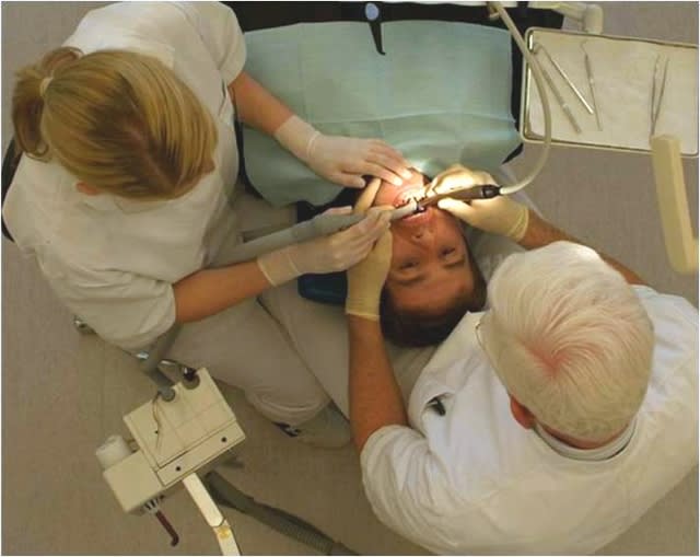 A quoi sert l'assistante sur la photo à part caresser le menton du patient et la main du prat ? Caler la tête du patient en équilibre ? :)