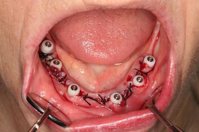photo 4:pose de 6 implants evl compacts 4/12 (serf). Tous à plus de 45N, sauf en 36...