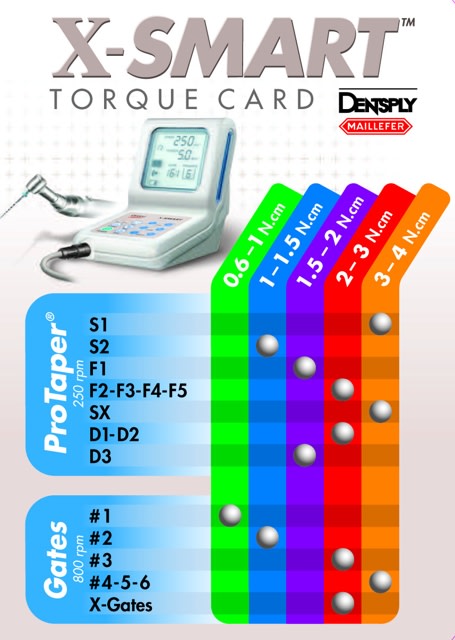 je vous demande une TORQUE card qui est distribue aves l'X-SMART. ( ou bien les valeur de torque pour les instrument protaper)