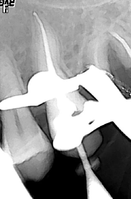-instrument fracturé impossible à retirer, je suis passée à côté et je l'ai noyé dans la gutta chaude.