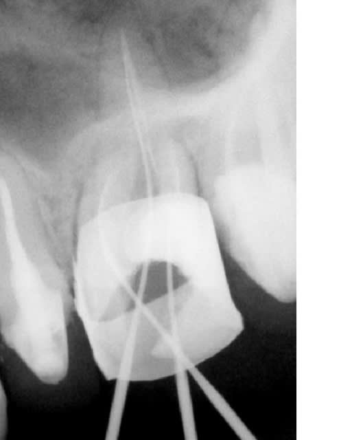 -instrument fracturé impossible à retirer, je suis passée à côté et je l'ai noyé dans la gutta chaude.