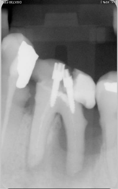 Je reste tout de même pessimiste pour cette dent étant donné qu'il semble y avoir du tartre sur toute la hauteur de la racine distale. Quelle est la possibilité de réattache dans ce cas??? noah?