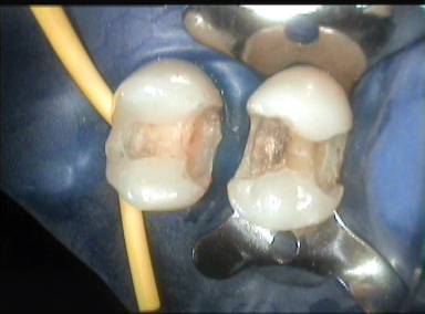bon ,allons-y: mon très cher marc(exagérons un peu), d'abord il n'y a rien de déshonorant à vendre des BMW et des Mercedes, mais passons, je dirai à mes copains concessionnaires que tu les a mal traités. concernant mon mépris permanent, je t'assure, il fait des pauses, comme tout le monde, il lui arrive même de se mettre en arrêt. alors les inlays: si tu crois que j'ai posé un seul inlay dans ma carrière, là ou une technique directe était indiquée, tu te mets le doigt dans l'oeil. pour des raisons ergonomiques, choisis un doigt de la main droite pour l'oeil droit. je te mets une image d'un inlay posé ce matin sur une 27. sur la 26 l'inlay date de 99. alors si tu crois que c'est une option de luxe, tu n'as rien compris au film. mais je fais aussi des restaurations directes, et comme ben, je prends un plaisir fou à les faire. je te mets également des images, avec digue, tellement compliquée à poser. mais je suis un imbécile: j'aurais du EXTRAIRE ces deux prémolaires et poser deux IMPLANTS, et comme ça, tu peux avoir raison sur toute la ligne. d'ailleurs j'adore poser des inlays et des implants quand ce n'est pas nécessaire, c'est tellement plus fun. quant aux céramo-céramiques, je n'ai JAMAIS poussé à la roue, car, excuse mon excès de modestie, je fais, avec mon céramiste, de très belles CCM aussi. et curieusement, je suis plus serein de façon générale avec les CCM. quant à la tolérance, il y a des maisons pour ça, et non , je ne suis pas tolérant quand un praticien me demande s'il doit acheter un autoclave, je suis intolérant quand un praticien ne PROPOSE pas des implants lorsqu'ils constituent le traitement de choix à long terme, je suis intolérant vis à vis de ceux qui soutiennent sans sourciller, que la digue ne sert à rien. pour le dernier point: nos cabinet sont déjà des entreprises, plus ou moins bien organisées et gérées, dire que l'optimisation de leur gestion et de leur organisation, merci trop peu pour moi, relève de l'autisme et de l'aveuglement. pour conclure, je précise que tout ceci n'est qu'un débat, que je ne connais pas Apap personnellement, et que ça n'a donc rien de personnel.
