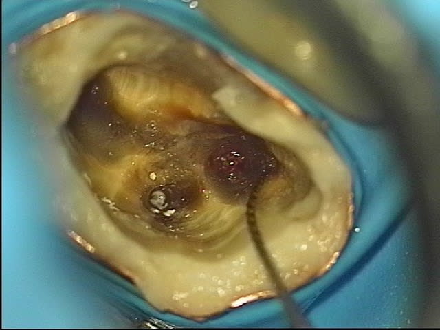 J'ai les boules... J'ai fait une belle cavité à 4 parois, j'ai mis une digue neuve... et voilà... :-(