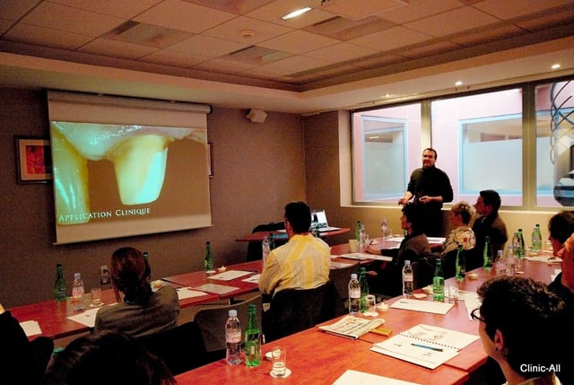 Dans une ambiance cordiale mais studieuse, les participants à cette journée ont pu s'essayer aux reconstruction corono radiculaire. Beaucoup de questions sur les matériaux et sur leur bonne utilisation.
