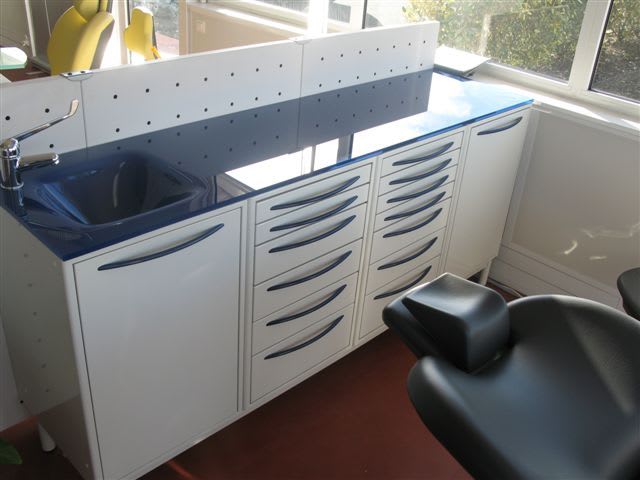 JE cherche à me constituer un meuble dentaire comme celui pris (discrètement) en photo... Un ami menuisier me fait le meuble mais d'après vous à qui je dois m'adresser pour me faire une table de travail en verre avec vasque intégrée?