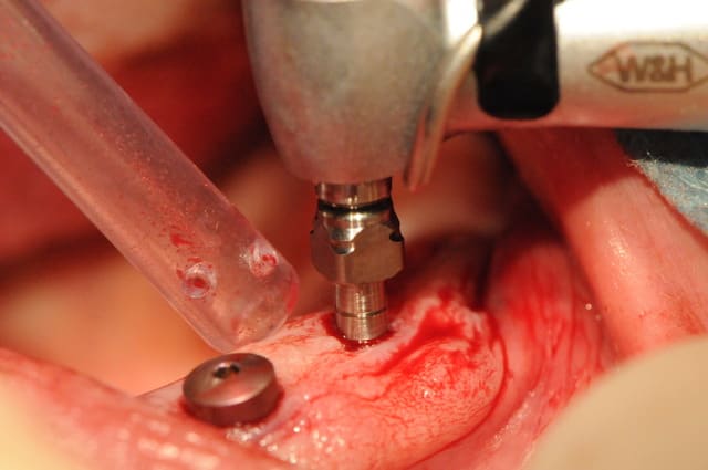Je ne pense pas qu'on puisse le faire chez tous le monde, mais là, j'avais de la crête, de la gencive attachée et de l'os à profusion...