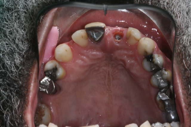 je crois que son pote aimerait basiquement répondre à la demande du patient qui a changé de praticien, et qui aimerait remettre une prothèse sur 21 mais se demande bien comment gérer et a un pb de place:ou cela ne tiendra pas plus que les precedentes,ou elle va être en bout à bout très courte et très moche