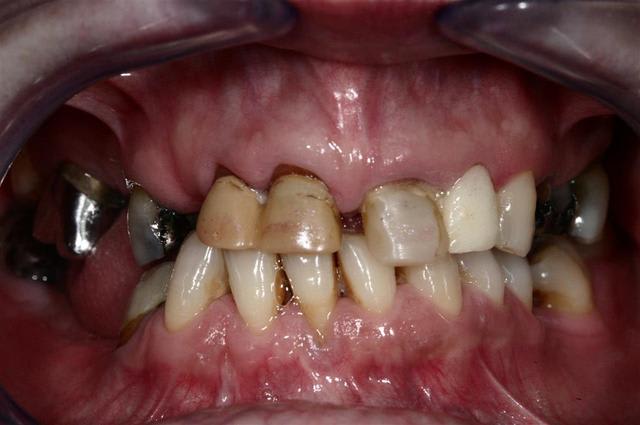 J'ai proposé divers plans de Tx, et le patient a fait un choix. Il est venu me voir, après la pose de 4 implants par un autre dentiste, pour une évaluation globale esthétique et fonctionelle. Il avait usé ses dents de plusieurs mm.