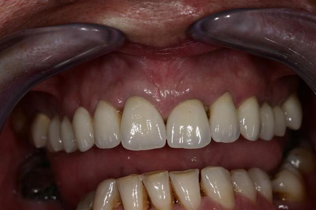 perte de 12 et 11 (trauma). Bref un beau mélange qu'il a décidé de réparer en entier. J'ai fais 28 unitées, en 2 temps, après greffes gencives, paro, gestion de la DV, etc, etc.