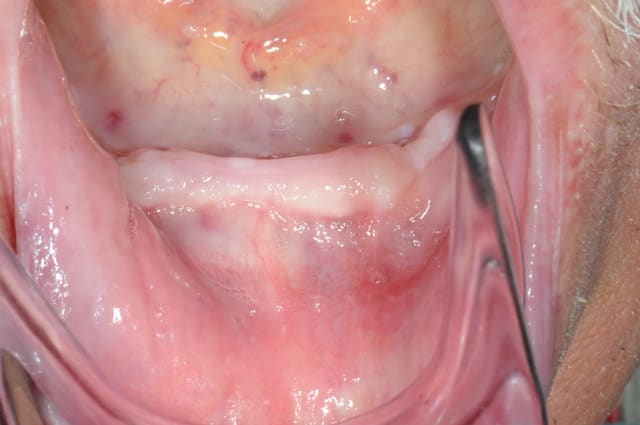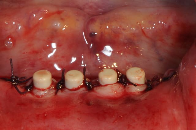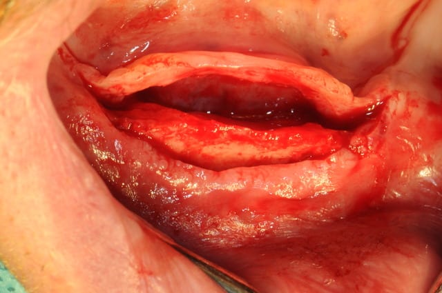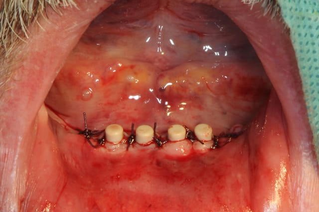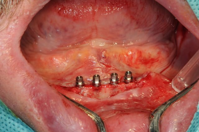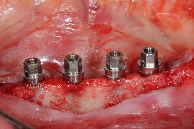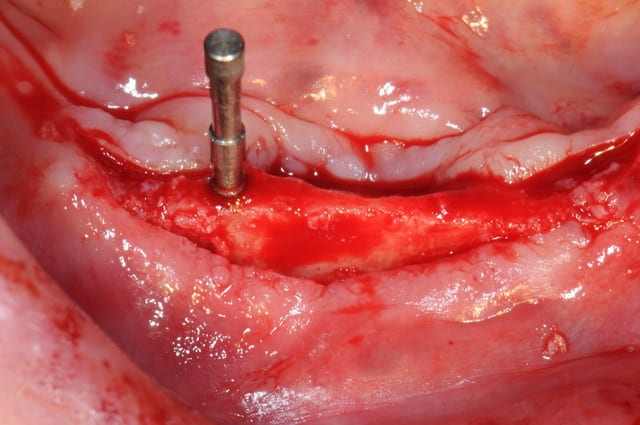 plus distalement, il y avait un os en néoformation donc insatisfaisant pour une stabilité primaire des implants, mais surtout, le relief osseux était désastreux.