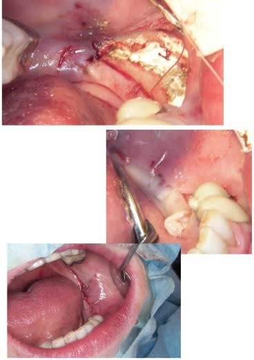 C’était une solution envisageable, et envisagée mais la crête habillée de sa gencive était déjà très plate et sur 33 13mm d'os c'est tout.