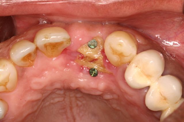 et rien ne semblait alarmer l'équipe quand au devenir de la greffe car technique de reconstruction 3D avec os cortical ramique servant de boite. Il va y avoir nécrose superficiel mais la greffe sera sauf..... J'ai pas suivi ce cas mais j'ai comme un doute.....